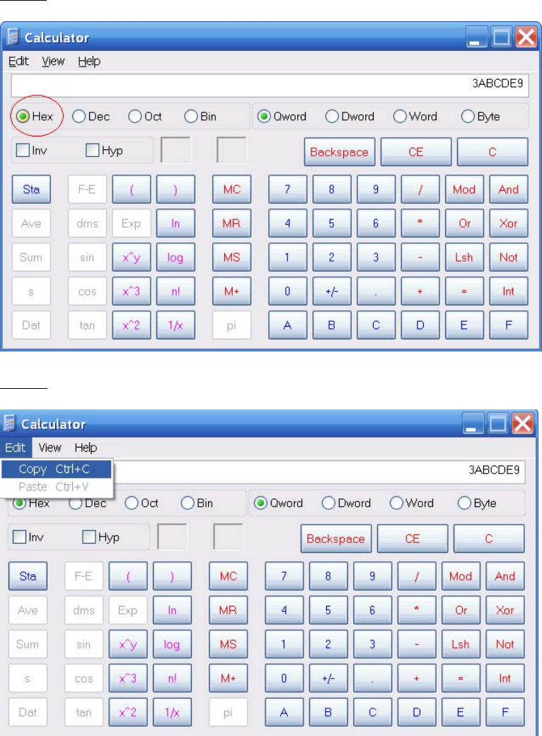 Click on “Hex” to convert