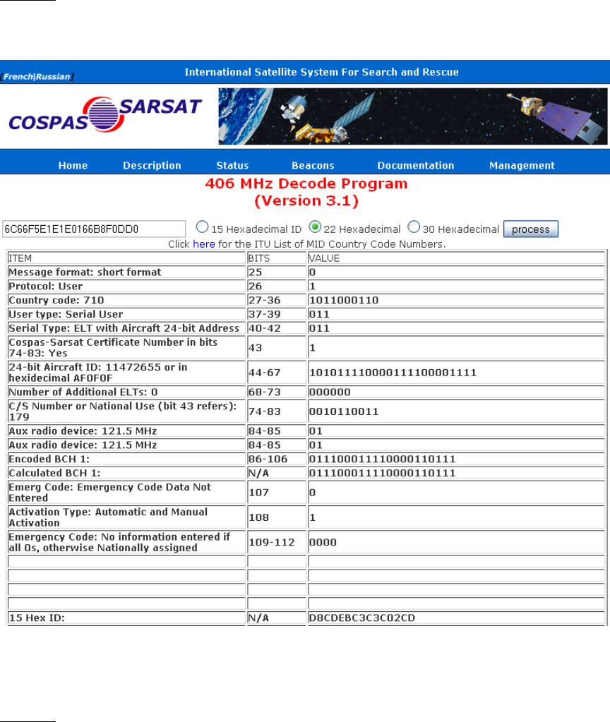 To program the ELT, we enter: